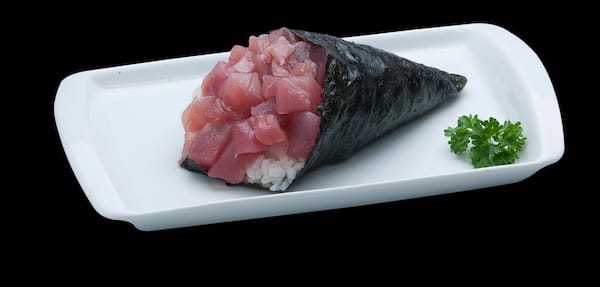 Temaki de salmão simples 180gr , arroz alga marinha, salmão e cebolinha