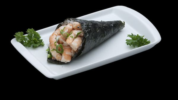 Temaki de camarão, arroz alga marinha, e cebolinha 180gr
